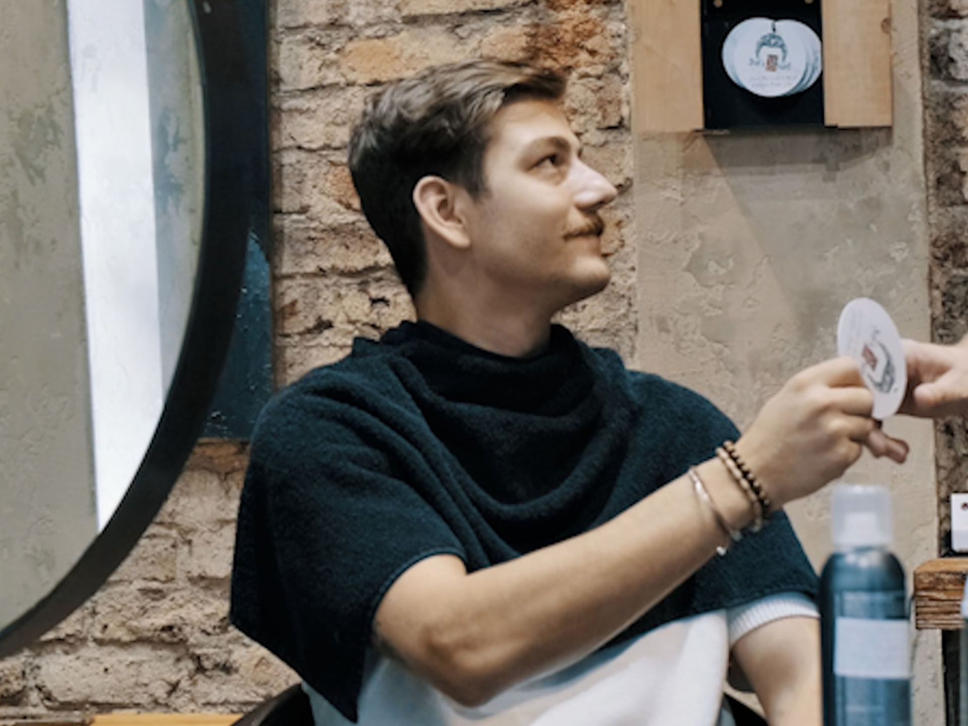 El bartender turco Emre Bilgin da una mano acogedora y amiga a su comunidad agregando una ficha para un afeitado gratis para los clientes o para regalar a alguien que lo necesite, como decoración de su cóctel Ketel One "Bob's Beard".
