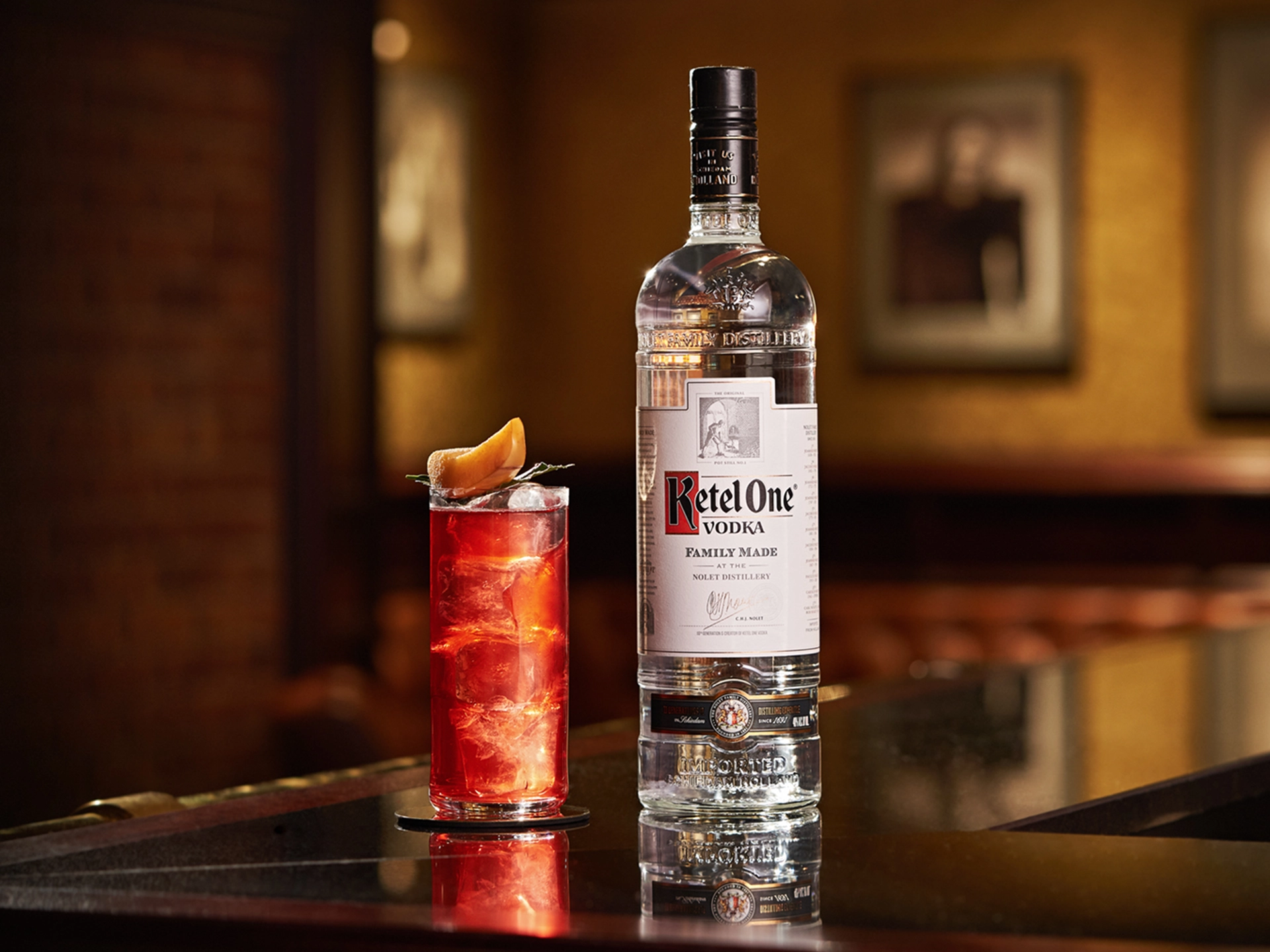 Verser aussitôt la Ketel One sur la glace dans le verre highball et compléter avec du « Garden Soda ».