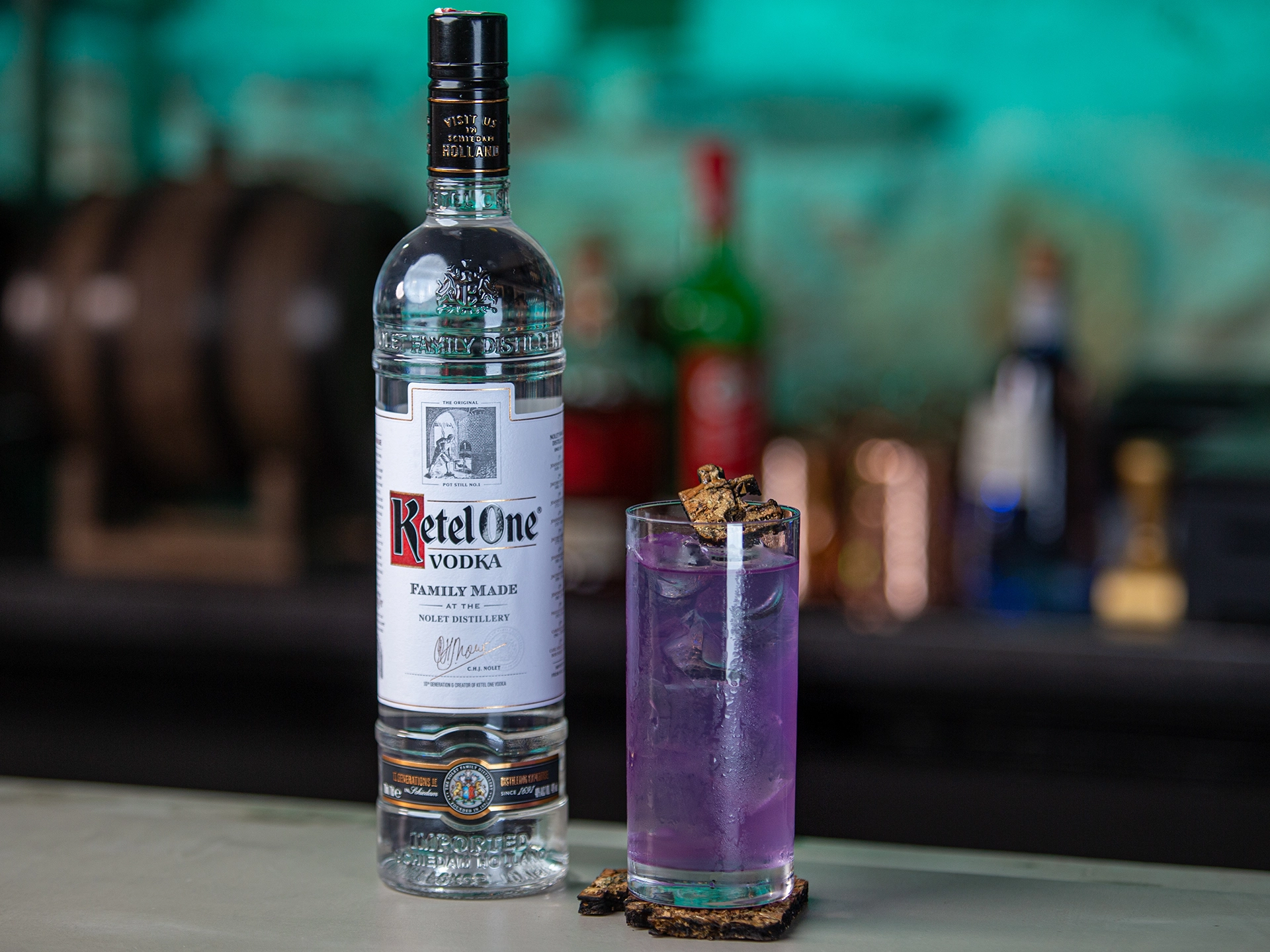 - protect this micro habitat. This cocktail is inspired by the local culture in this land, their attention to nature and their love towards these unique butterflies. By using local produces we can make them shine in a Ketel One vodka based cocktail, with a spirit that is a pioneer in sustainability and impacting communities in a positive way. The land of the blue butterfly uses a homemade lavender liquor made with local lavender and local honey. In addition to that, a local dry blackcurrant wine. As a garnish, a piece of puzzle that contains seeds of flowers that the butterflies