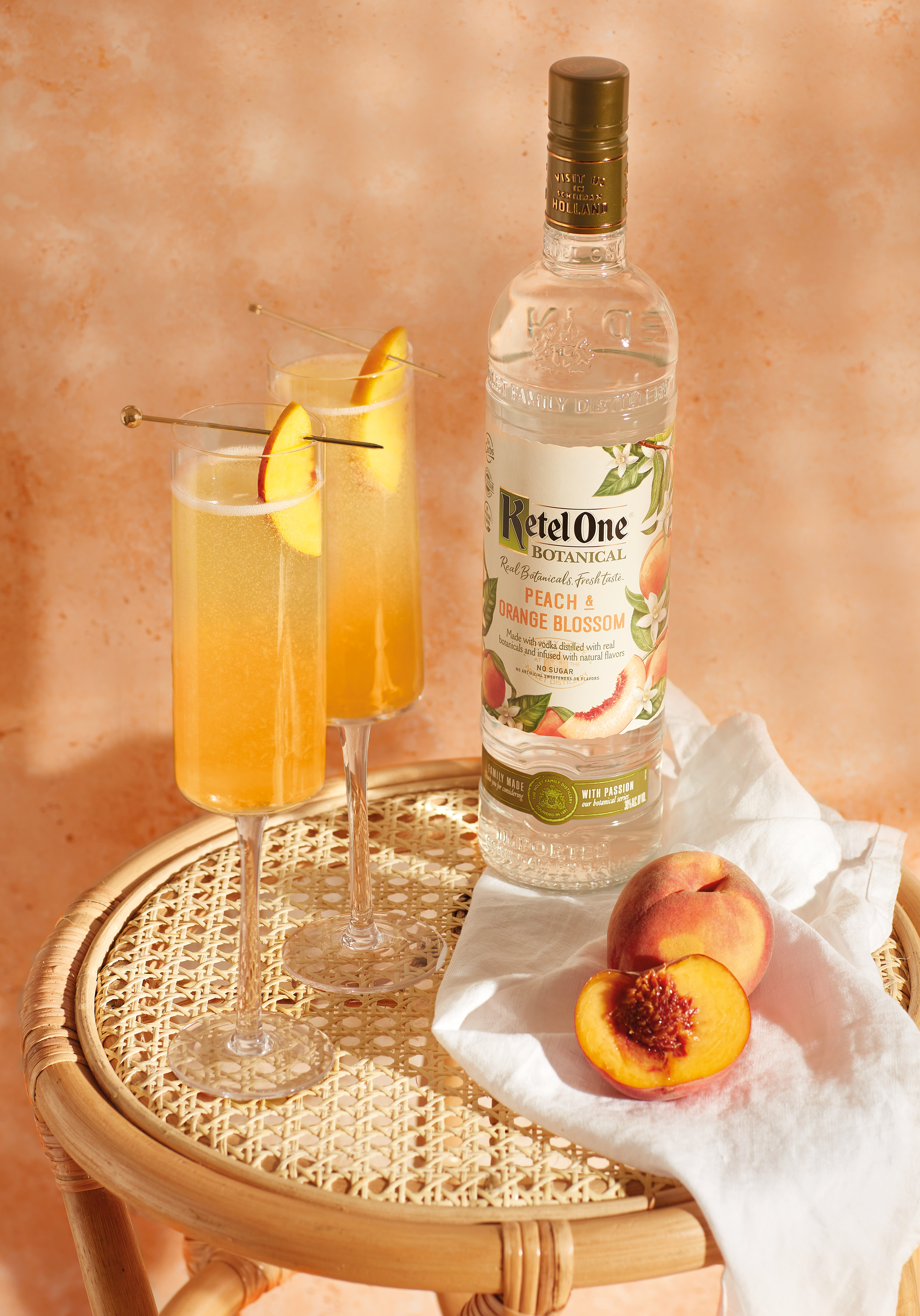 Combine Ketel One Botanical Peach and Orange Blossom and Peach Puree in a mixing glass with good quality ice cubes. Stir to combine, then strain into flute glass. Top with sparkling wine and garnish with Peach Slice.